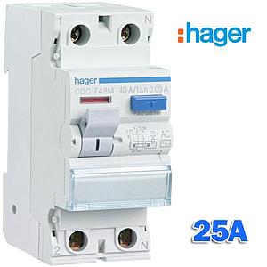 Diferencial Industrial 25A 2P Monofásico Hager CDC728M