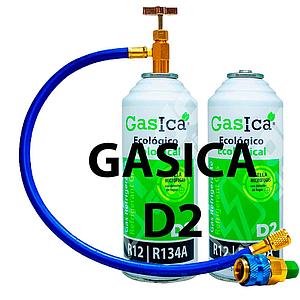 Pack (2x226Gr) Botellas Refrigerante Ecológico Gasica D2 sustituto R12,R134A más manguera con llave + Conector rápido