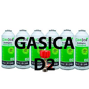 3 pack ahorro (2x226Gr) Botellas Gas Refrigerante Gasica D2 sustituto de R12, R134A más llave recarga Gas